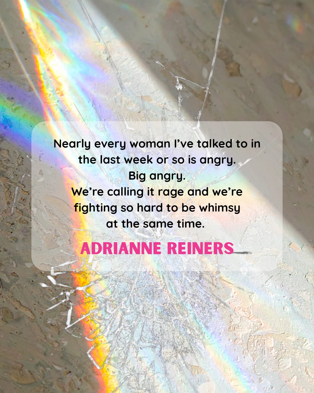 Nearly every woman I’ve talked to in the last week or so is angry. Big angry. We’re calling it rage and we’re fighting so hard to be whimsy at the same time.
