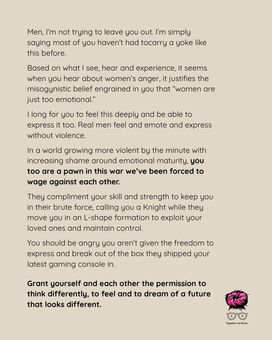 In a world growing more violent by the minute with increasing shame around emotional maturity, you too are a pawn in this war we’ve been forced to wage against each other.